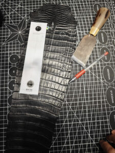 • Chất liệu: Da cá sấu cao cấp, nhập khẩu từ Pháp – lựa chọn những phần da vân đẹp, đều, sắc nét.