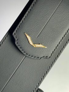 Một chi tiết đặc biệt khẳng định sự khác biệt của bao da Vertu Signature S tại Thế Phạm chính là logo V chế tác từ vàng 18k nguyên khối, được đính kèm kim cương tự nhiên.