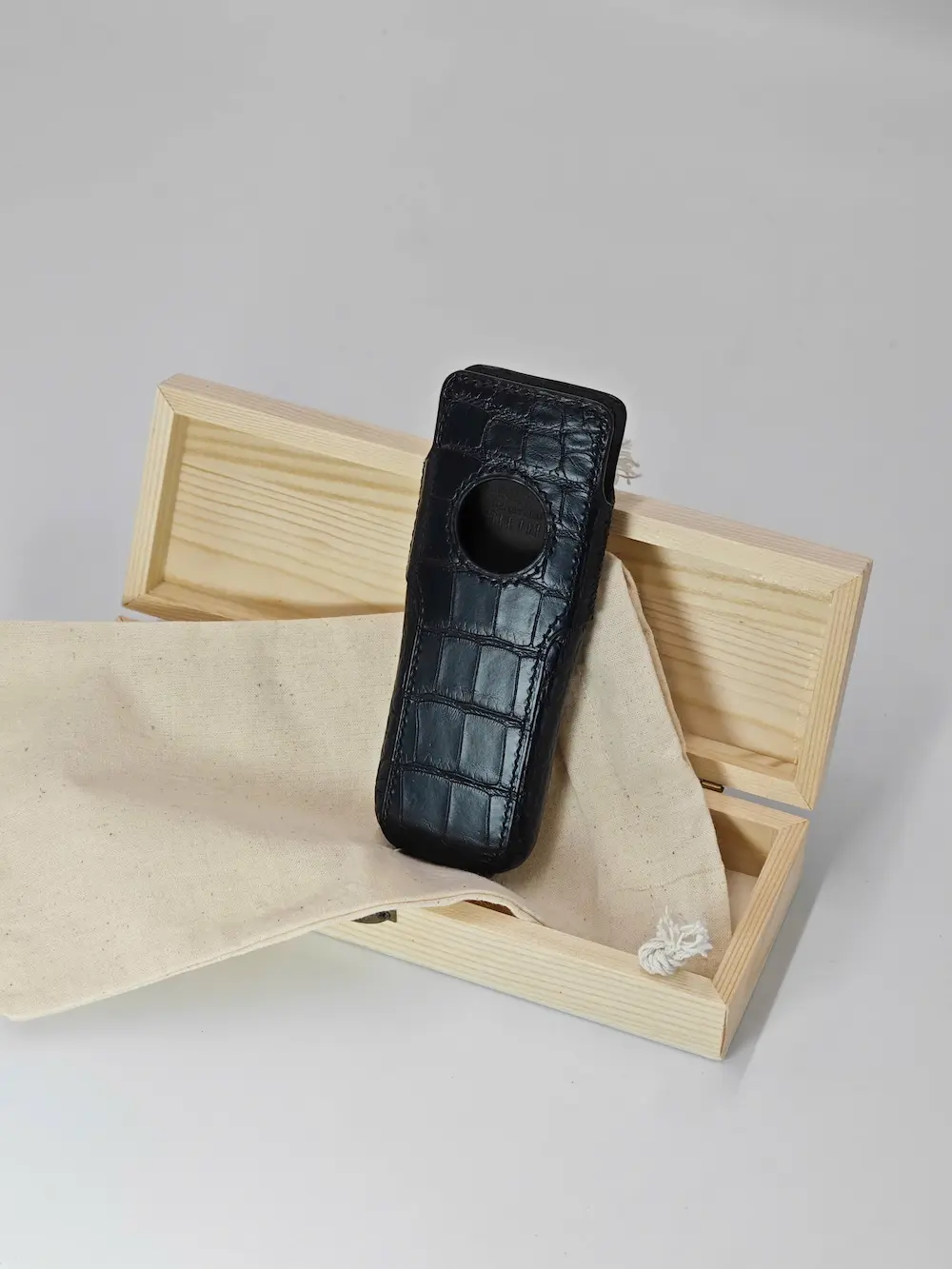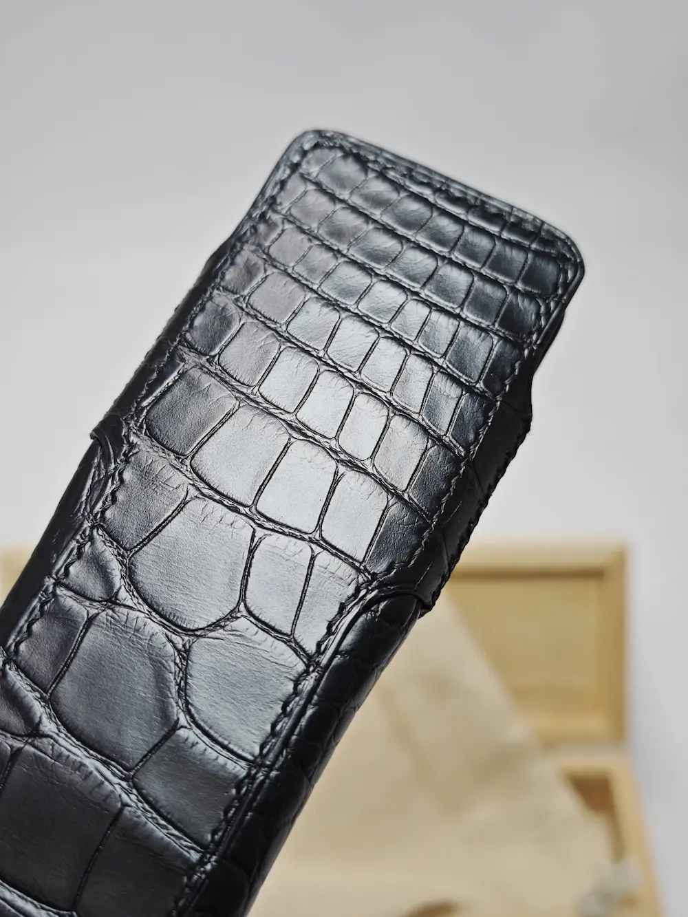 Bao Da XOR Da Cá Sấu Pháp màu đen vân bụng, chế tác thủ công cao cấp, độc bản, dành cho người dùng điện thoại XOR đề cao bảo mật và đẳng cấp.