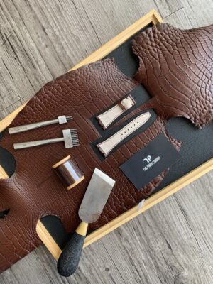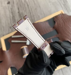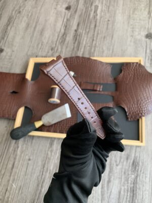 Dây đồng hồ Audemars Piguet da cá sấu Pháp vân bụng màu nâu, thủ công cao cấp