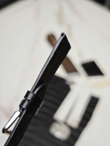 Toàn bộ dây đồng hồ Franck Muller da cá sấu Pháp màu đen tại Thế Phạm được khâu tay 100%. Chúng tôi không sử dụng dây may sẵn hay gia công công nghiệp. Mỗi mũi chỉ được thực hiện thủ công, đều tay, thẳng hàng, đảm bảo độ chắc chắn và tính thẩm mỹ lâu dài.