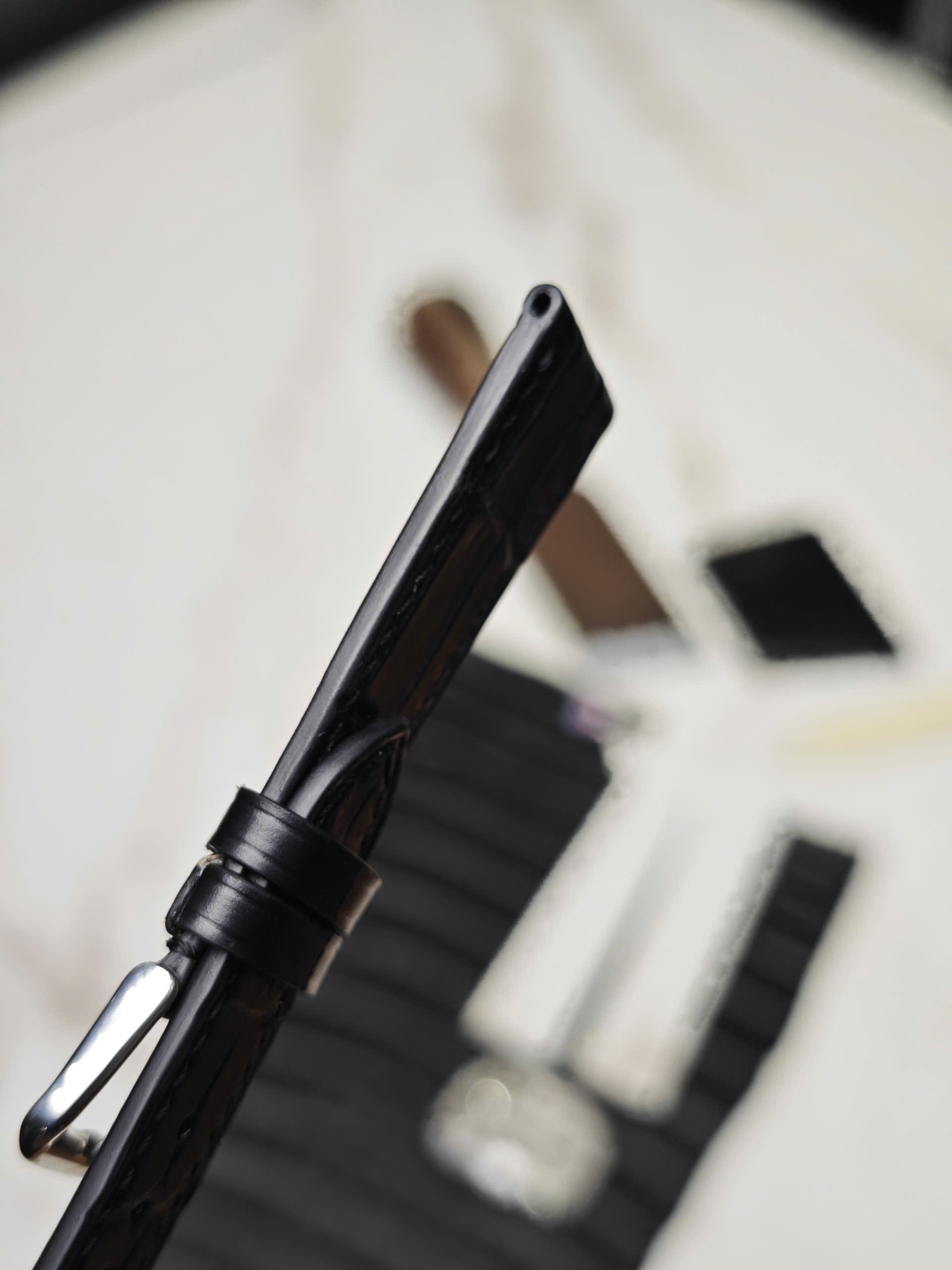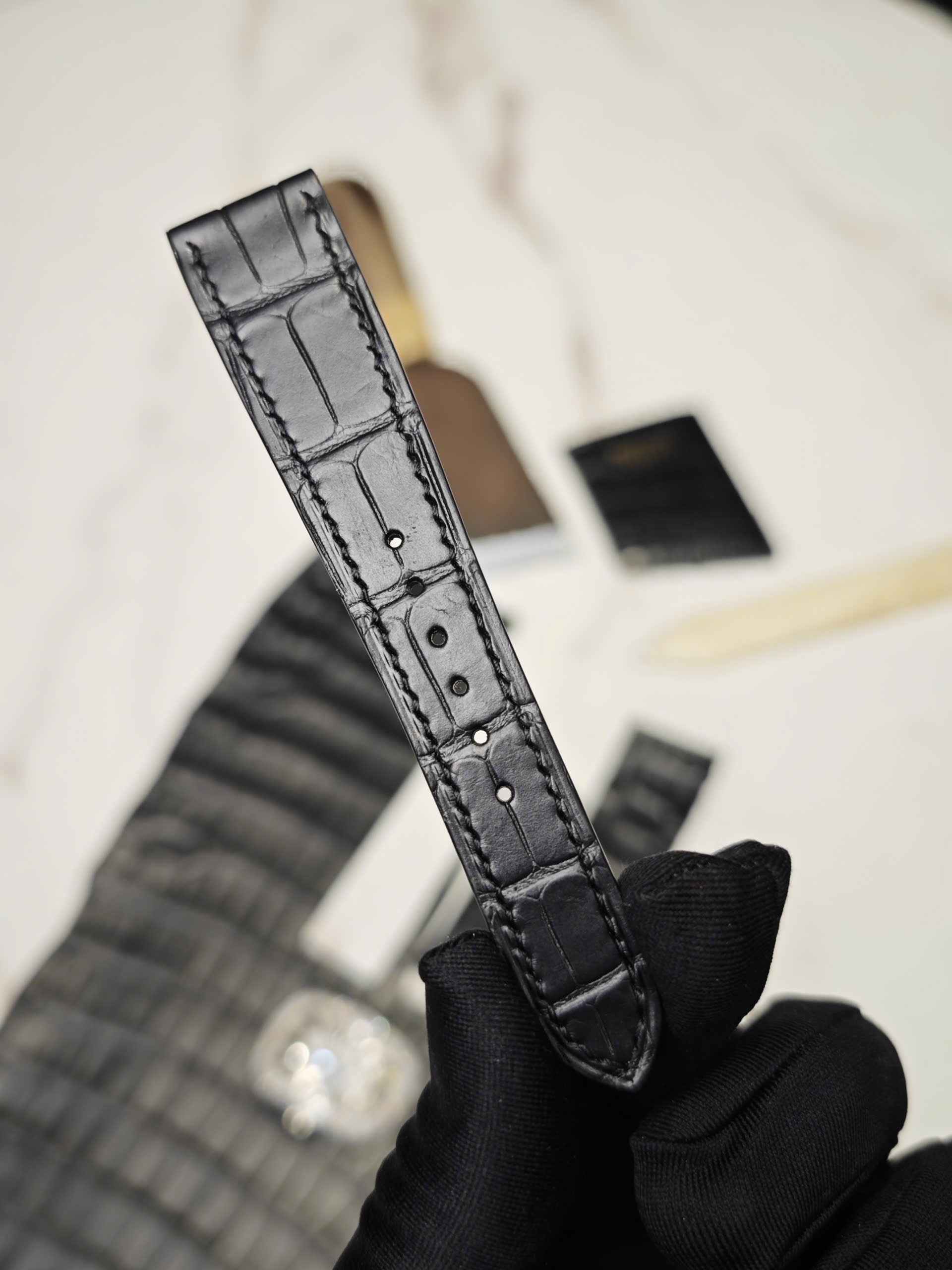 Dây đồng hồ Franck Muller da cá sấu Pháp màu đen chế tác tại Thế Phạm là kết quả của quá trình làm nghề nghiêm túc, nơi từng đường kim, mũi chỉ đều có mục đích rõ ràng. Đó không phải là sản phẩm đại trà, mà là một lựa chọn dành cho những ai hiểu rằng giá trị thật sự nằm ở sự chỉn chu và bền bỉ theo thời gian.