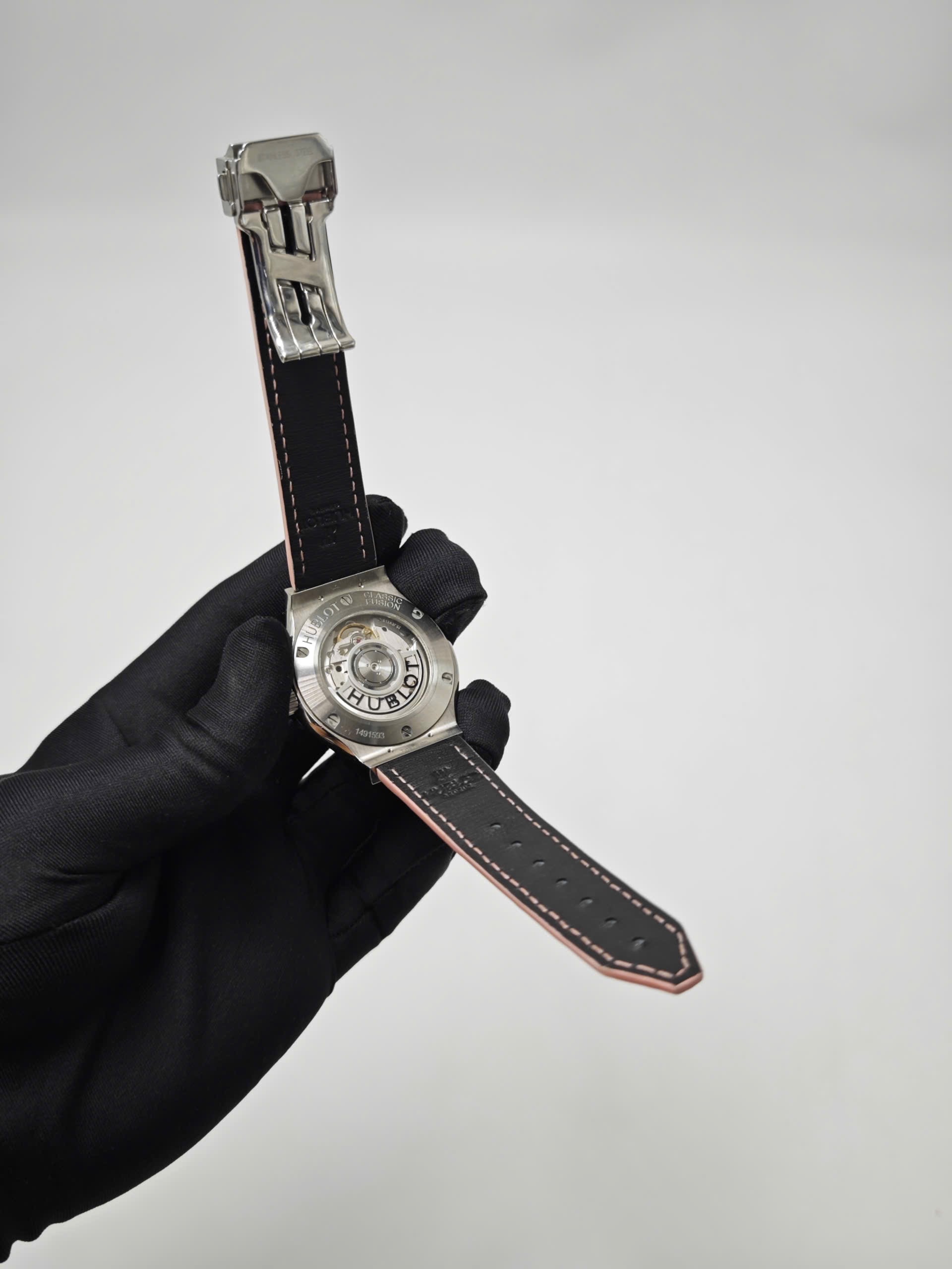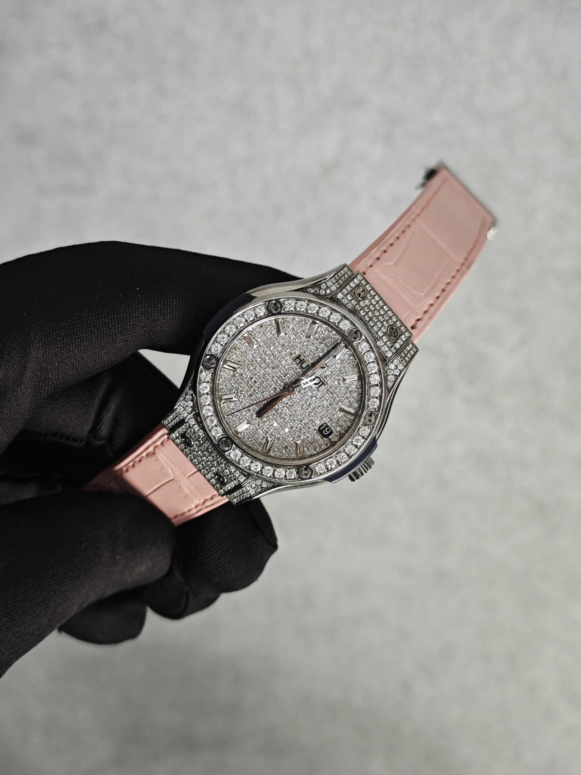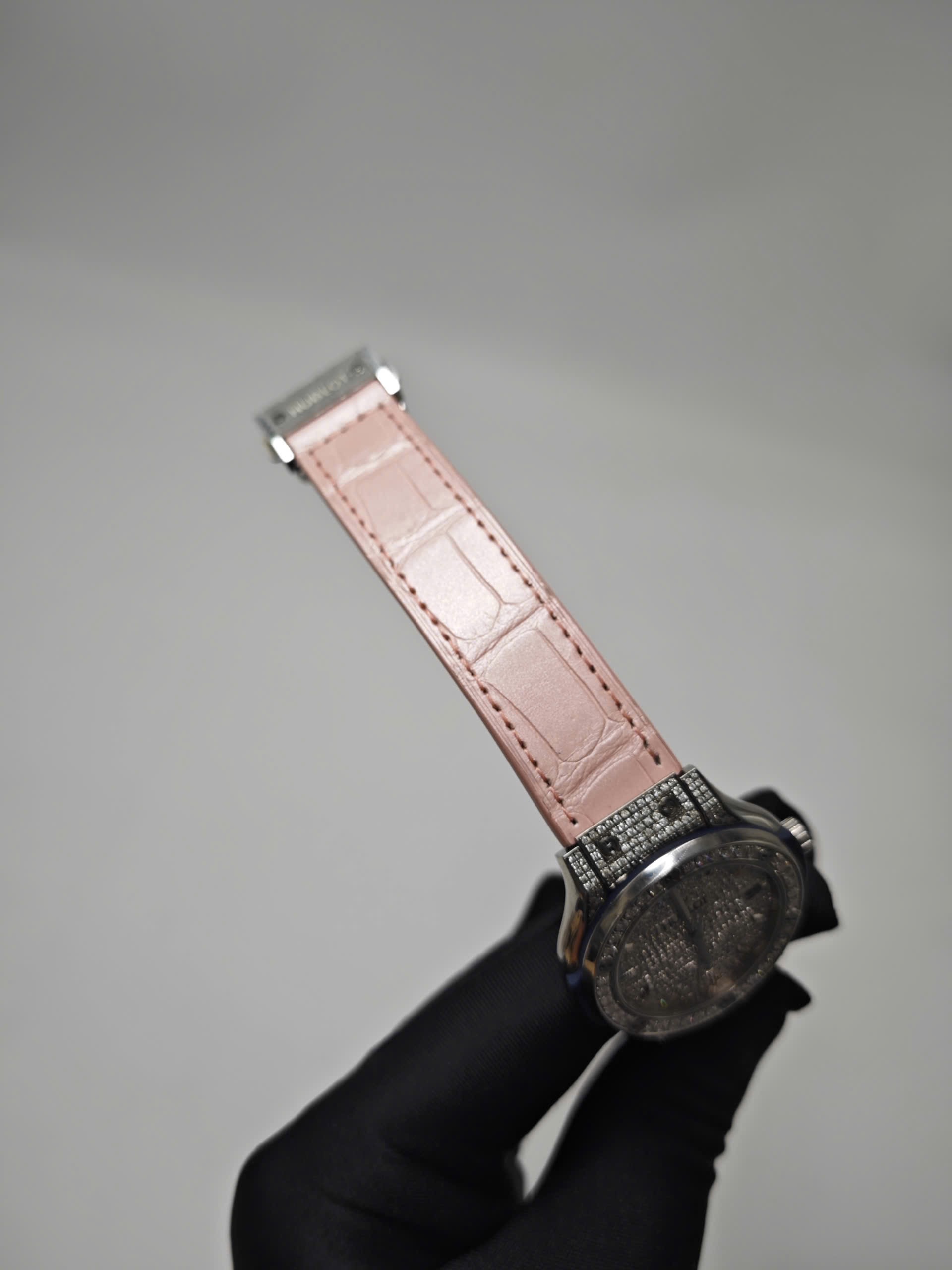 Dây cá sấu màu hồng không dành cho số đông. Đây là lựa chọn của những khách hàng hiểu rõ gu thẩm mỹ cá nhân, yêu thích sự khác biệt nhưng vẫn đặt yếu tố tinh tế lên hàng đầu. Khi kết hợp cùng Hublot Classic Fusion, sắc hồng mang lại cảm giác hiện đại, thời trang, nhưng vẫn giữ được nét sang trọng cần có của một chiếc đồng hồ cao cấp.