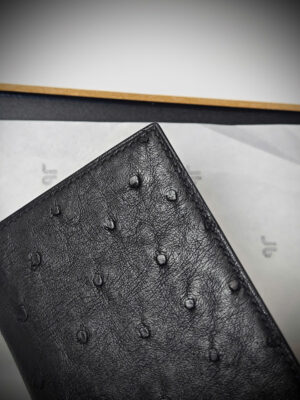Da đà điểu là một trong những loại da tự nhiên cao cấp và bền bỉ nhất hiện nay. Bề mặt vân da đặc trưng giúp mỗi chiếc ví đều khác biệt. Theo bài viết từ Luxedigest, da đà điểu có khả năng chống mài mòn cao hơn hẳn da bò và thường được dùng cho các sản phẩm xa xỉ như túi Hermès, giày bespoke.