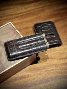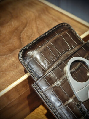 TP Crown – Bao da xì gà 3 điếu da cá sấu Ý vân đuôi, khâu tay thủ công cao cấp. Thiết kế sang trọng dành cho doanh nhân và người yêu xì gà.