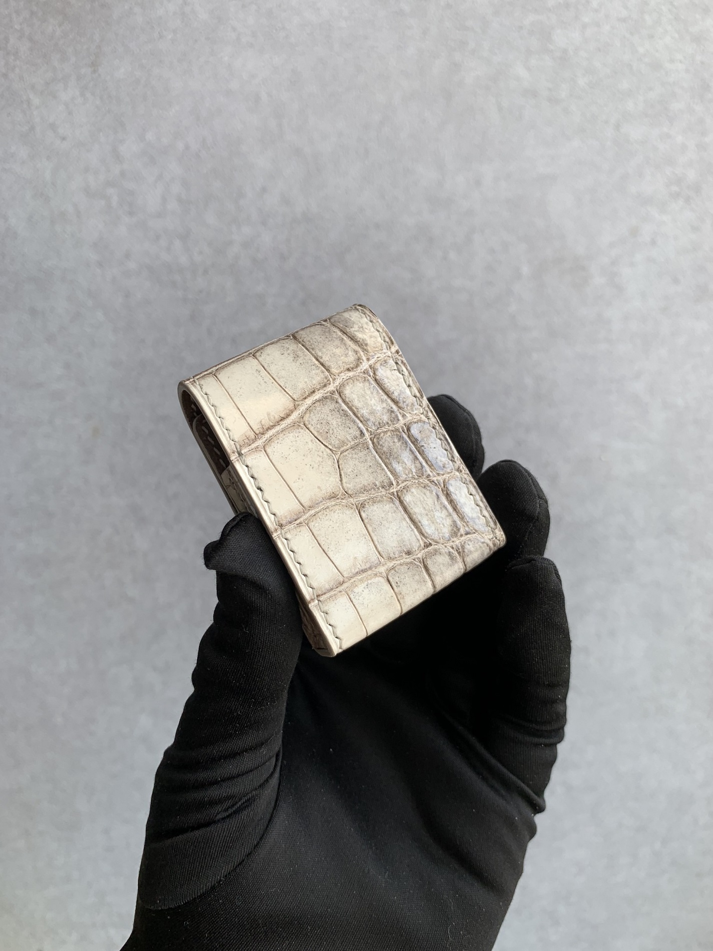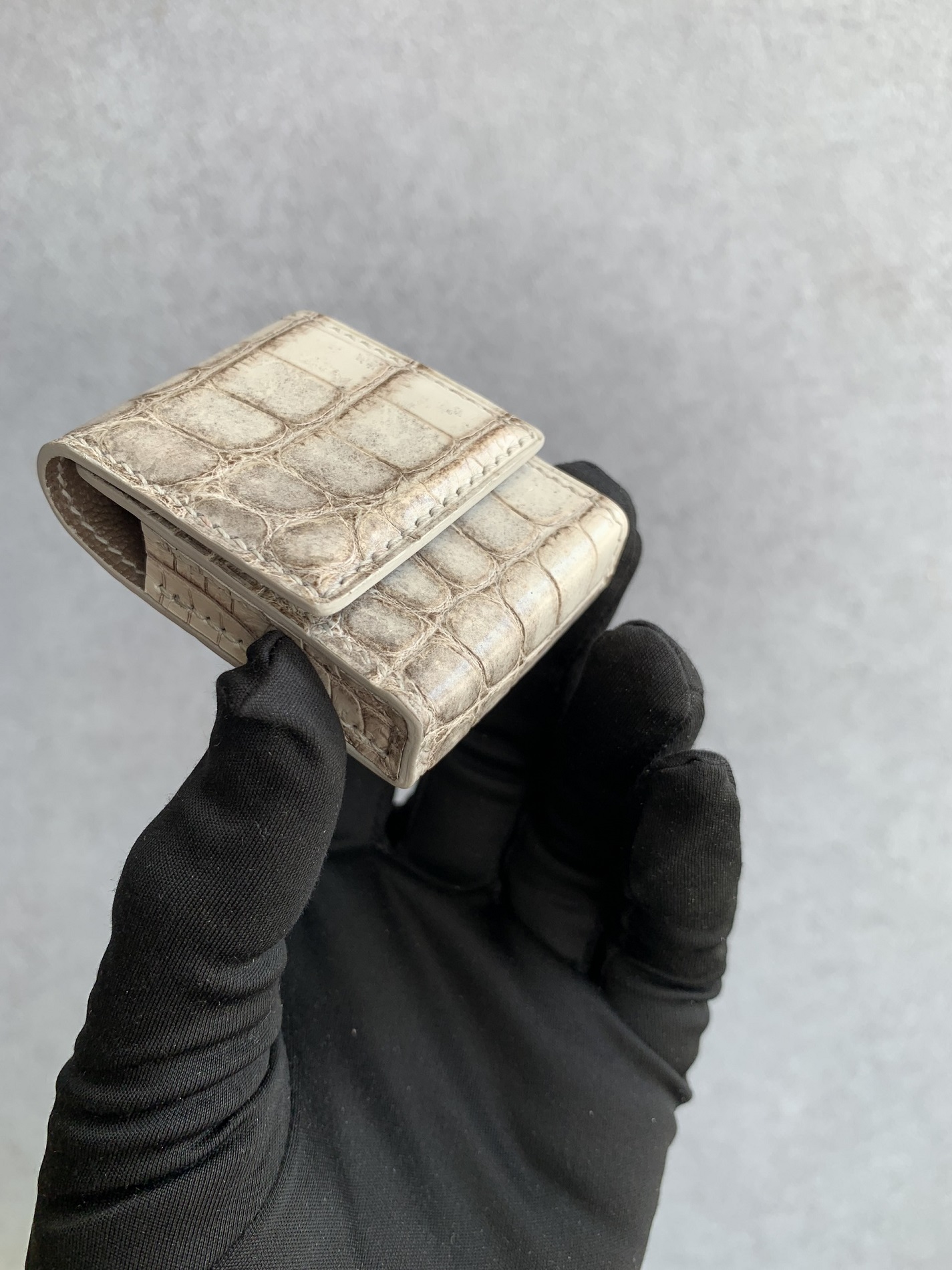 Không phải ngẫu nhiên mà da cá sấu bạch tạng Himalayan nhập khẩu từ Ý được các nhà mốt lớn như Hermès chọn làm chất liệu cho những chiếc túi Birkin triệu đô. Với tông màu trắng ngà dần chuyển sang xám khói, dòng da này không chỉ quý hiếm mà còn cực kỳ khó xử lý.