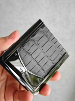 Không phải ngẫu nhiên mà da cá sấu luôn được ưa chuộng trong các thiết kế cao cấp. Đặc biệt, da cá sấu Pháp nổi tiếng nhờ bề mặt vân tự nhiên, sang trọng và độ bền vượt trội. Vị trí vân bụng được lựa chọn để bọc điện thoại vì đây là phần da phẳng, mịn, đều, tạo nên một tổng thể tinh tế và đẳng cấp.