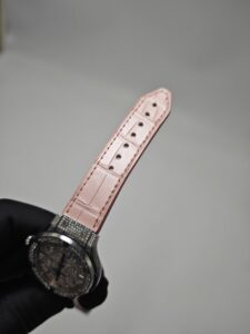 Dây đồng hồ Hublot Classic Fusion da cá sấu Pháp màu hồng không chỉ là một phụ kiện, mà là kết quả của quá trình làm nghề nghiêm túc – nơi từng mũi kim, đường chỉ đều mang mục đích rõ ràng và được hoàn thiện bằng kinh nghiệm tích lũy theo thời gian.