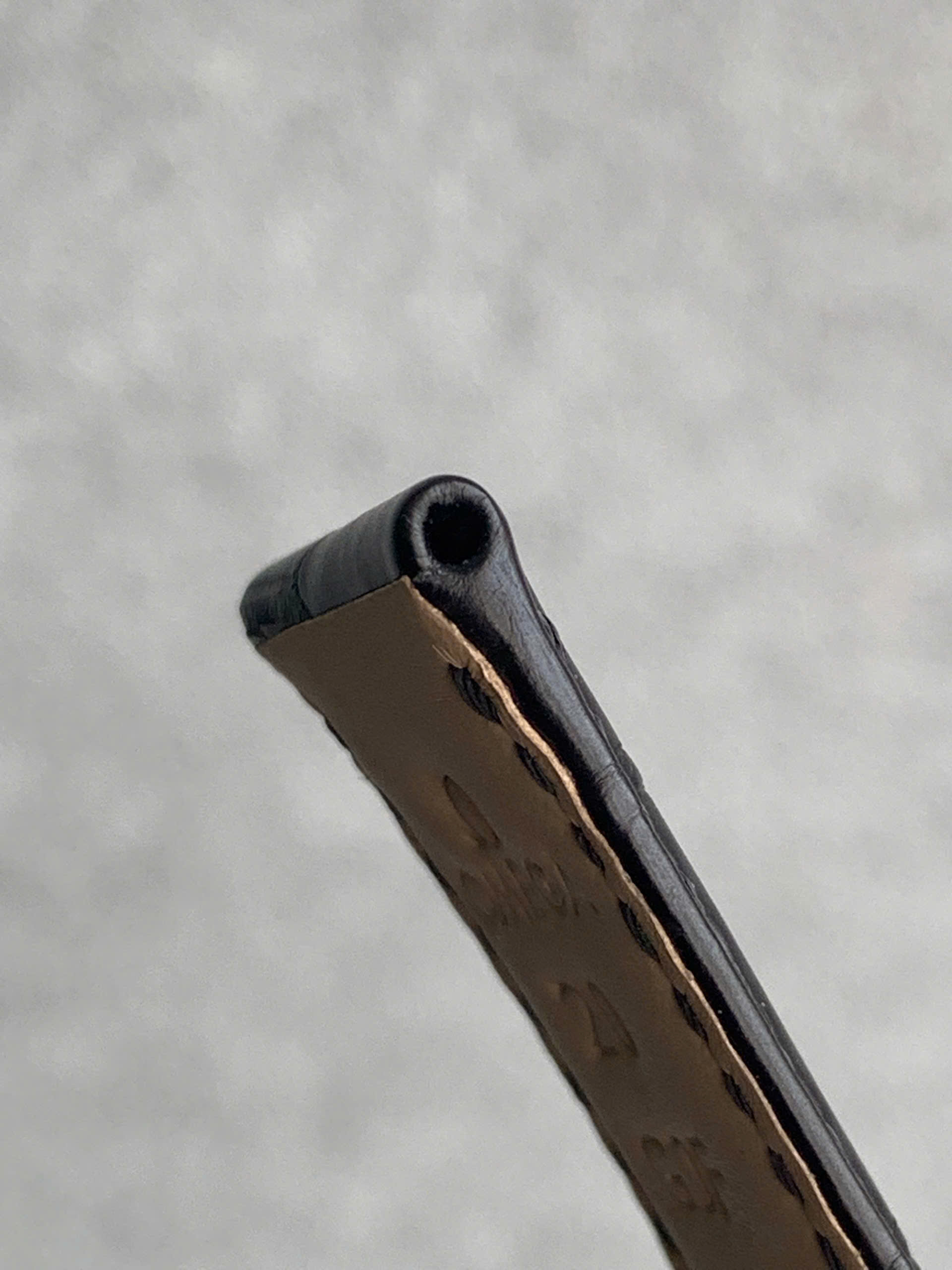 Thế Phạm sử dụng kỹ thuật gấp mép thủ công, mép da được gập vào trong thay vì cắt cạnh thô. Điều này giúp dây gọn gàng, liền lạc và giữ form tốt theo thời gian. Khi đeo, mép dây không cấn tay, không bong tróc, không tạo cảm giác cộm.