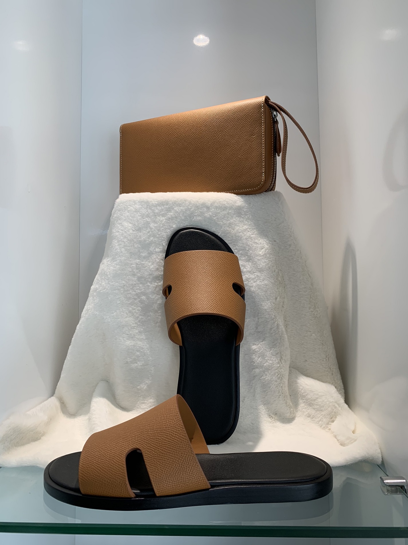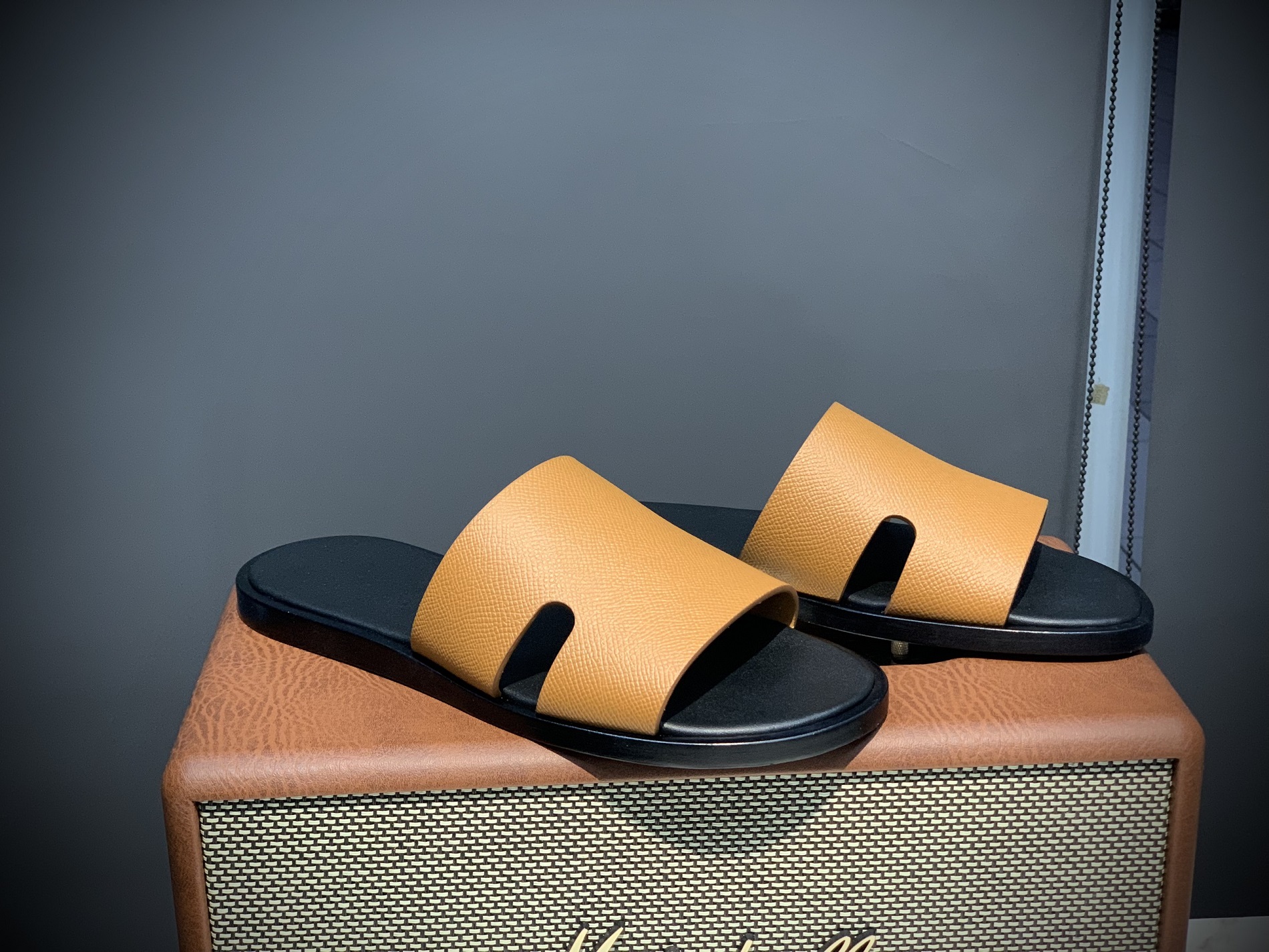 Quai dép: Da Epsom Weinheimer Đức – nổi tiếng với vân ép sang trọng, khả năng chống xước, giữ form tốt và độ bền vượt trội. Quai dép được khâu thủ công tỉ mỉ để đảm bảo sự chắc chắn và tính thẩm mỹ.