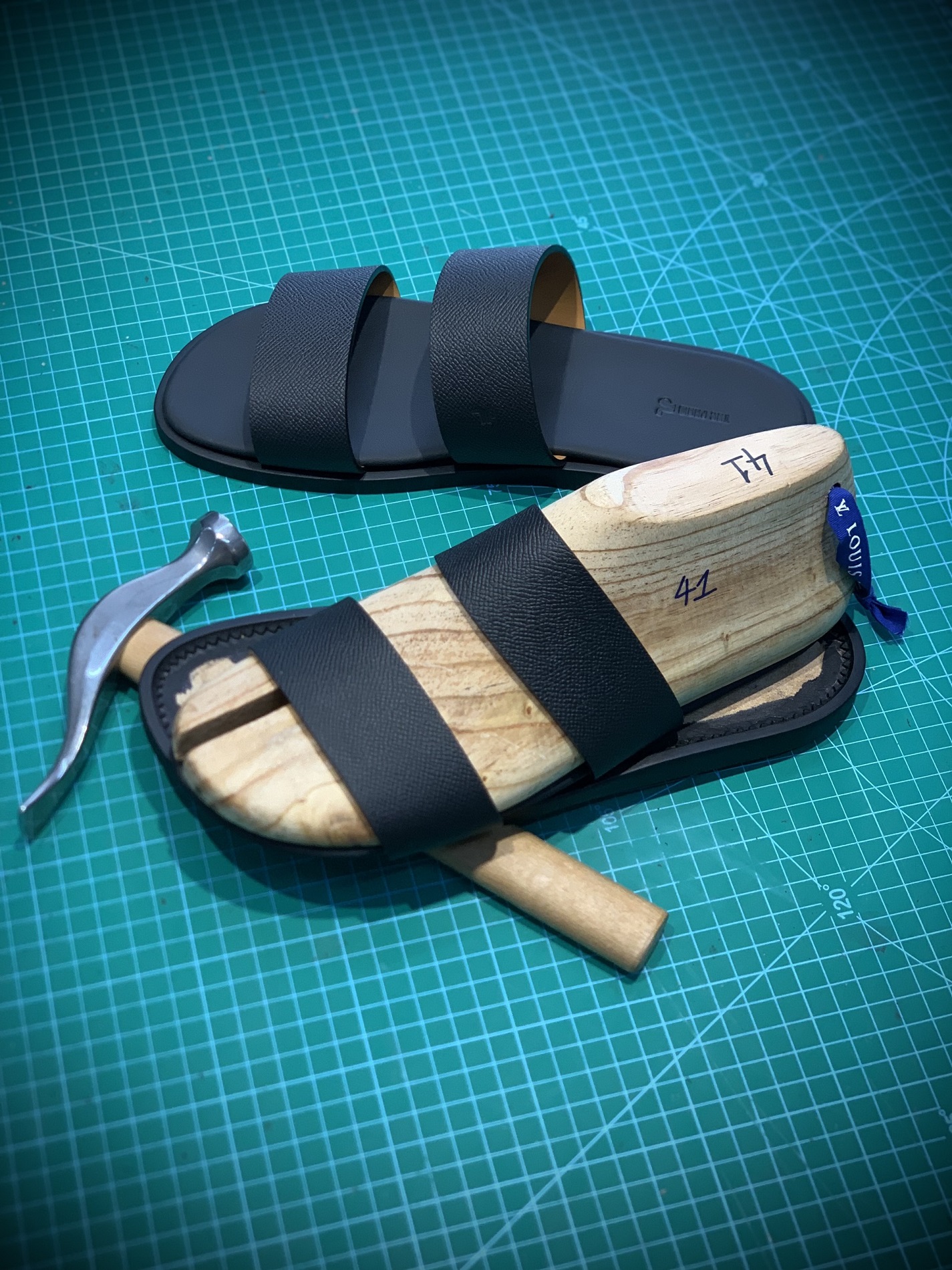 Đế dép làm từ da veg-tan Ý – loại da thuộc thảo mộc truyền thống, bền và lên màu thời gian rất đẹp.