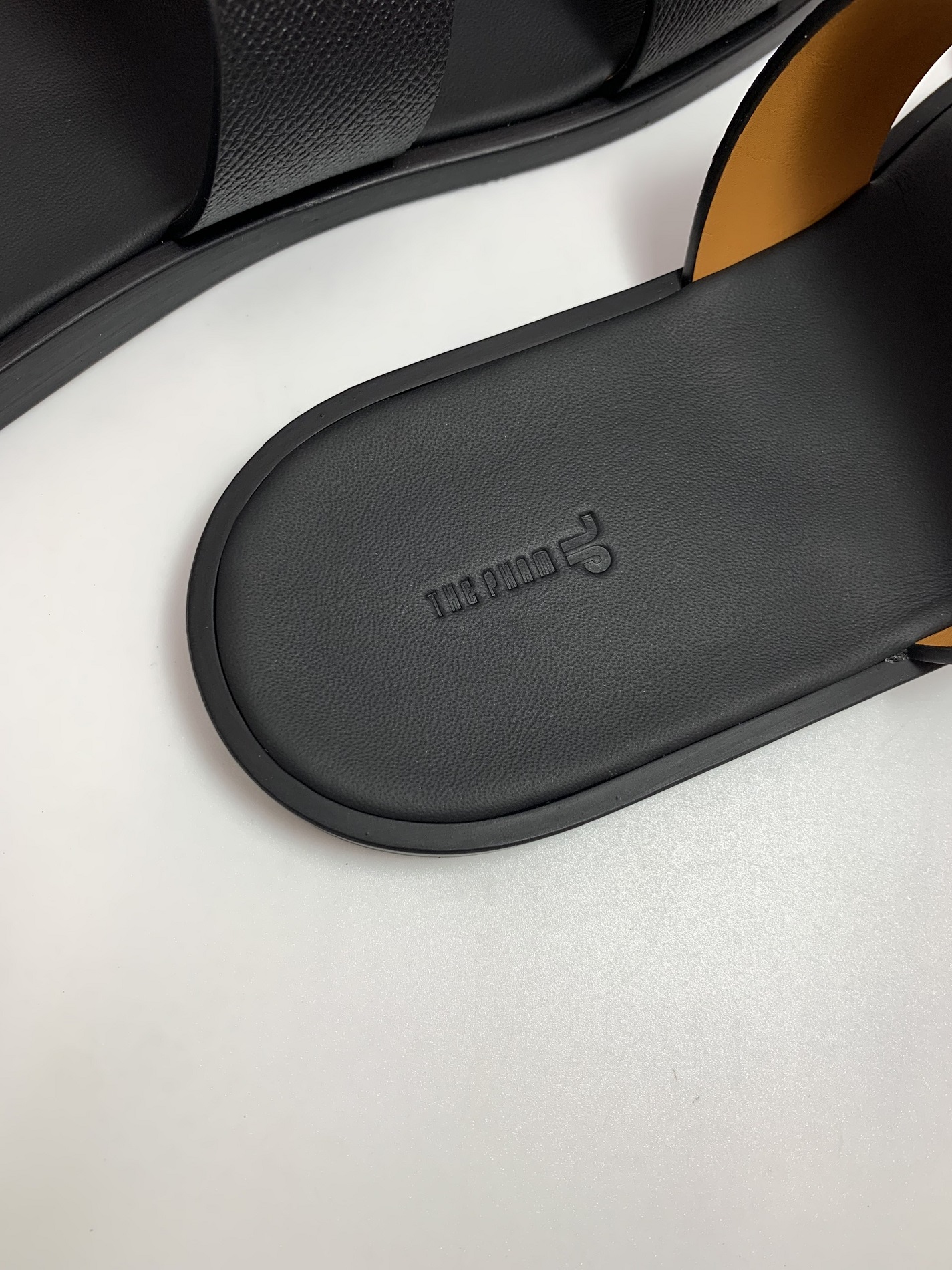 Điểm nhấn của Dép TP nam – GoRi màu đen chính là thiết kế hai quai ngang bản to song song, được cắt chuẩn xác theo tỷ lệ vàng. Form dép được căn chỉnh kỹ lưỡng, ôm gọn bàn chân giúp tôn dáng và tạo cảm giác chắc chắn khi di chuyển. Gót dép được nâng nhẹ từ 1,5 đến 2cm, không chỉ tăng chiều cao mà còn giúp giữ thẳng lưng và hạn chế mỏi bàn chân khi sử dụng lâu.