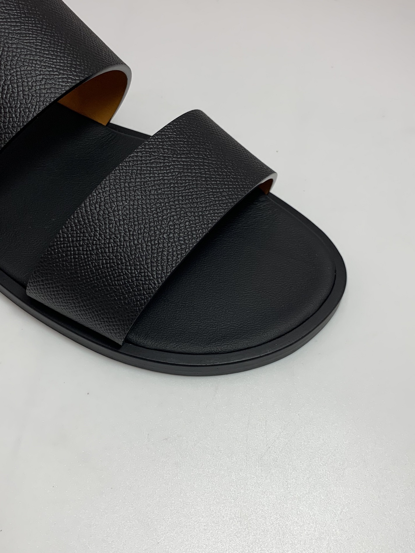 Quai dép sử dụng da Epsom Weinheimer (Đức) – dòng da cao cấp nổi bật với vân nhám đều, khả năng chống trầy tốt, giữ phom lâu và càng đi càng bóng đẹp.