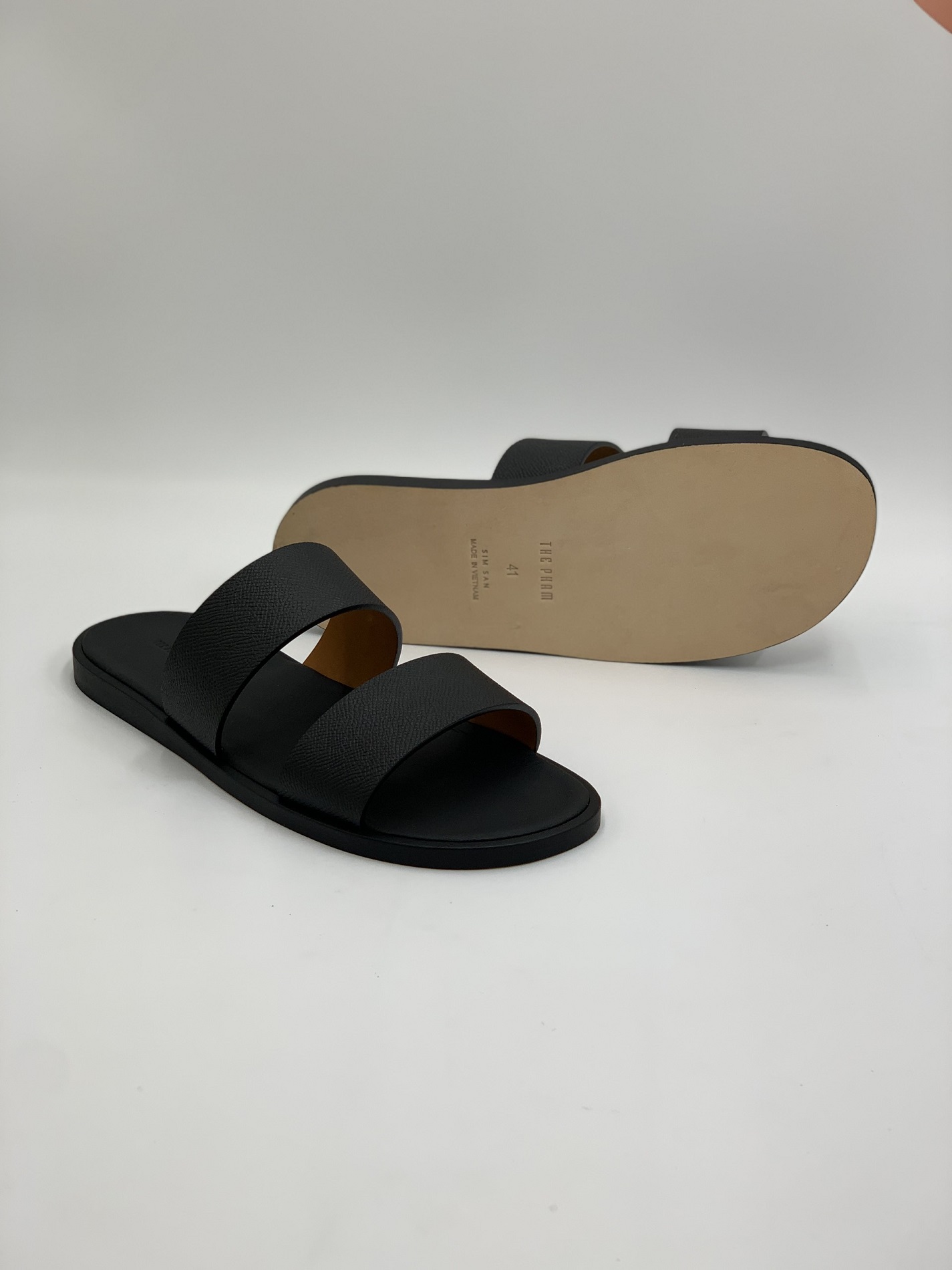 Dép TP nam – GoRi màu đen là mẫu dép da thủ công cao cấp đến từ thương hiệu Thế Phạm, được thiết kế dành riêng cho nam giới yêu thích phong cách tối giản nhưng vẫn thể hiện được chất riêng. Với tông đen chủ đạo mạnh mẽ, dép mang lại sự sang trọng, dễ phối và phù hợp trong nhiều hoàn cảnh từ đi làm, dạo phố đến du lịch hoặc tiếp khách thân mật.