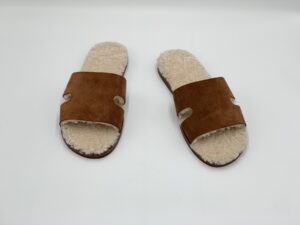 Bên trong dép là lớp lót da bê Ý, chọn lọc từ những tấm da mềm mại, giúp thấm hút mồ hôi và nâng niu lòng bàn chân. Lớp lót màu trung tính nhã nhặn, hoàn thiện cảm giác dễ chịu khi mang lâu trong điều kiện khí hậu nóng ẩm.