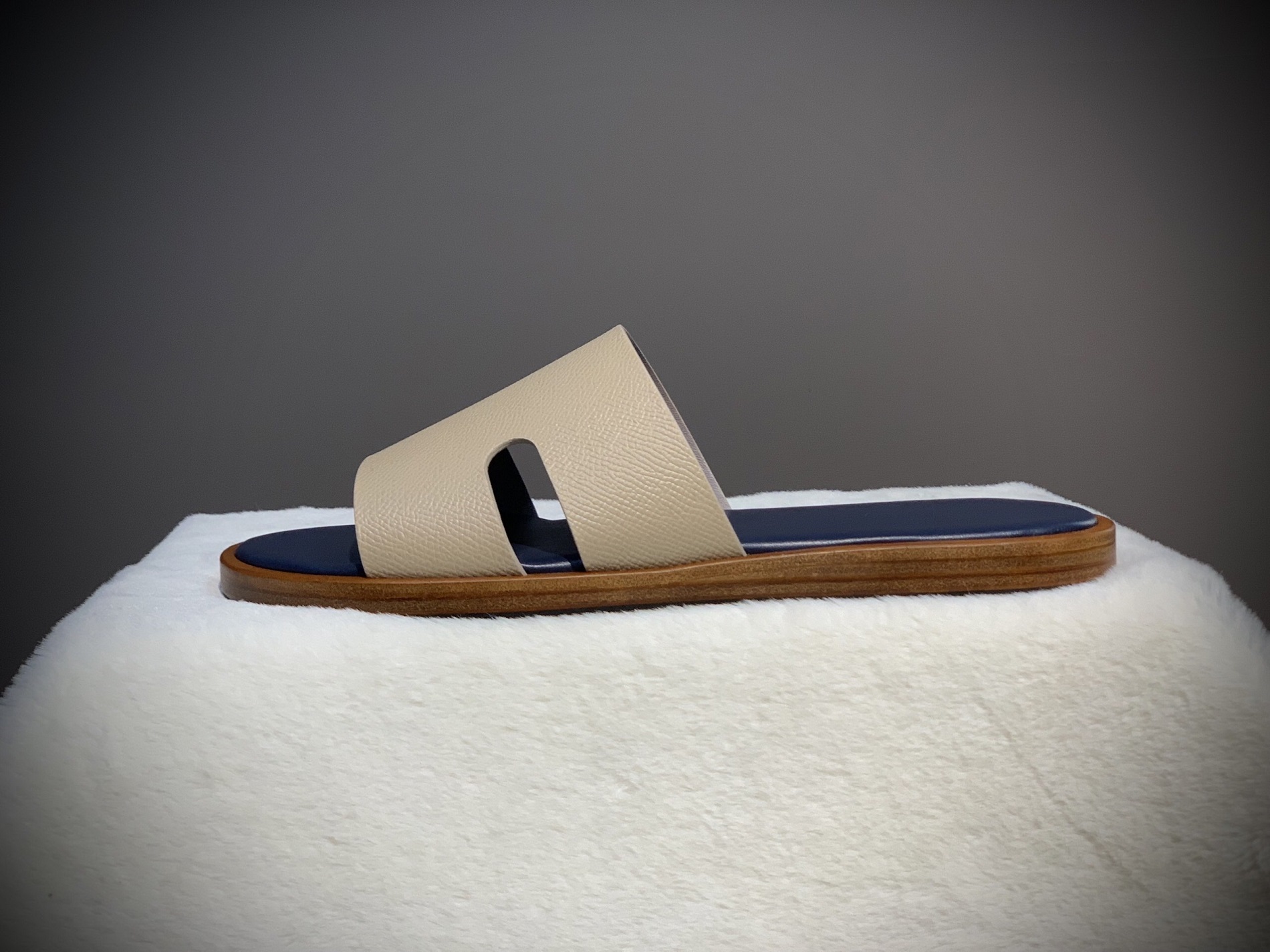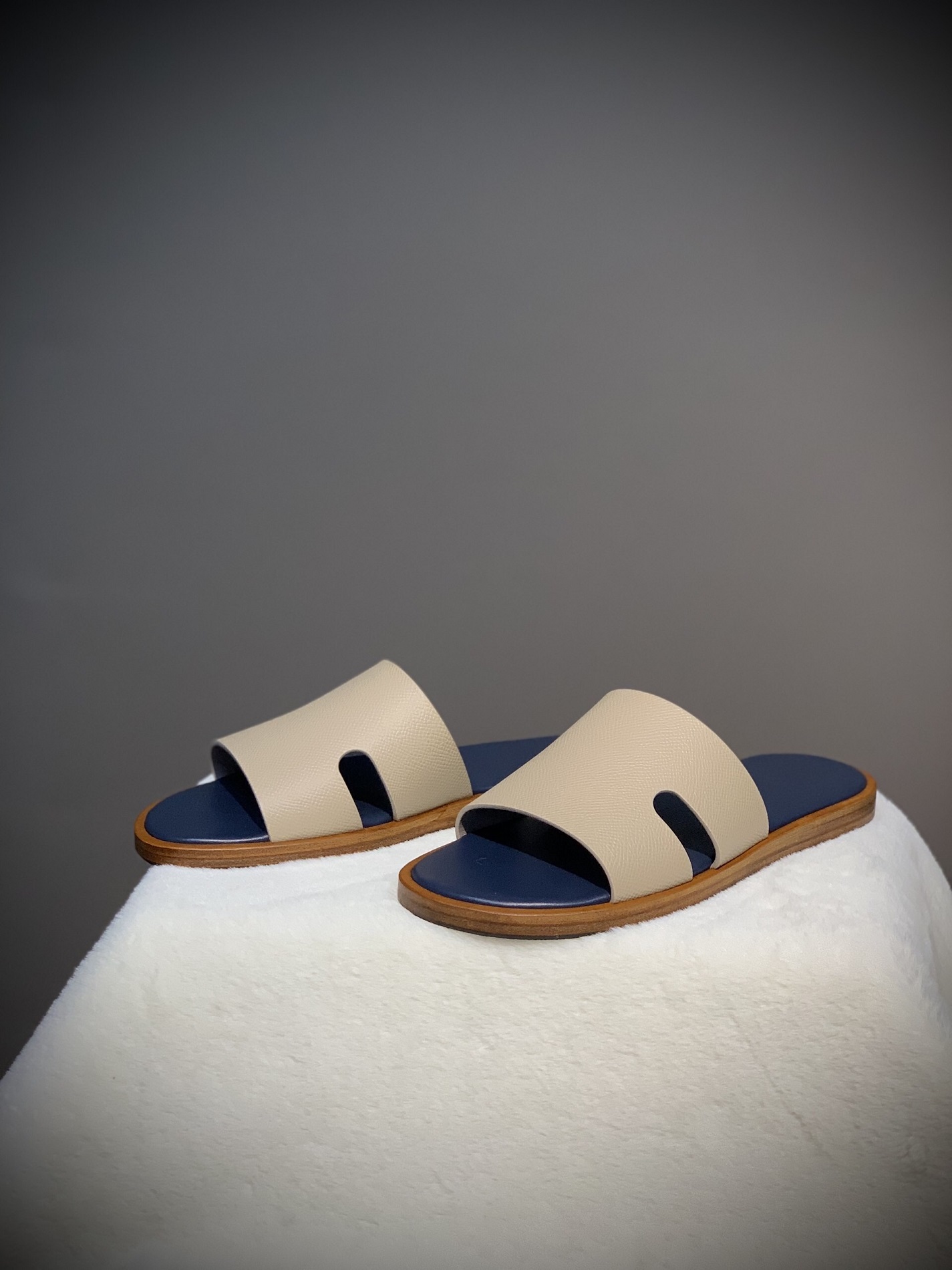 Dép TP Nam – Màu Beige Lót Xanh Navy: Đẳng cấp thủ công cho quý ông hiện đại