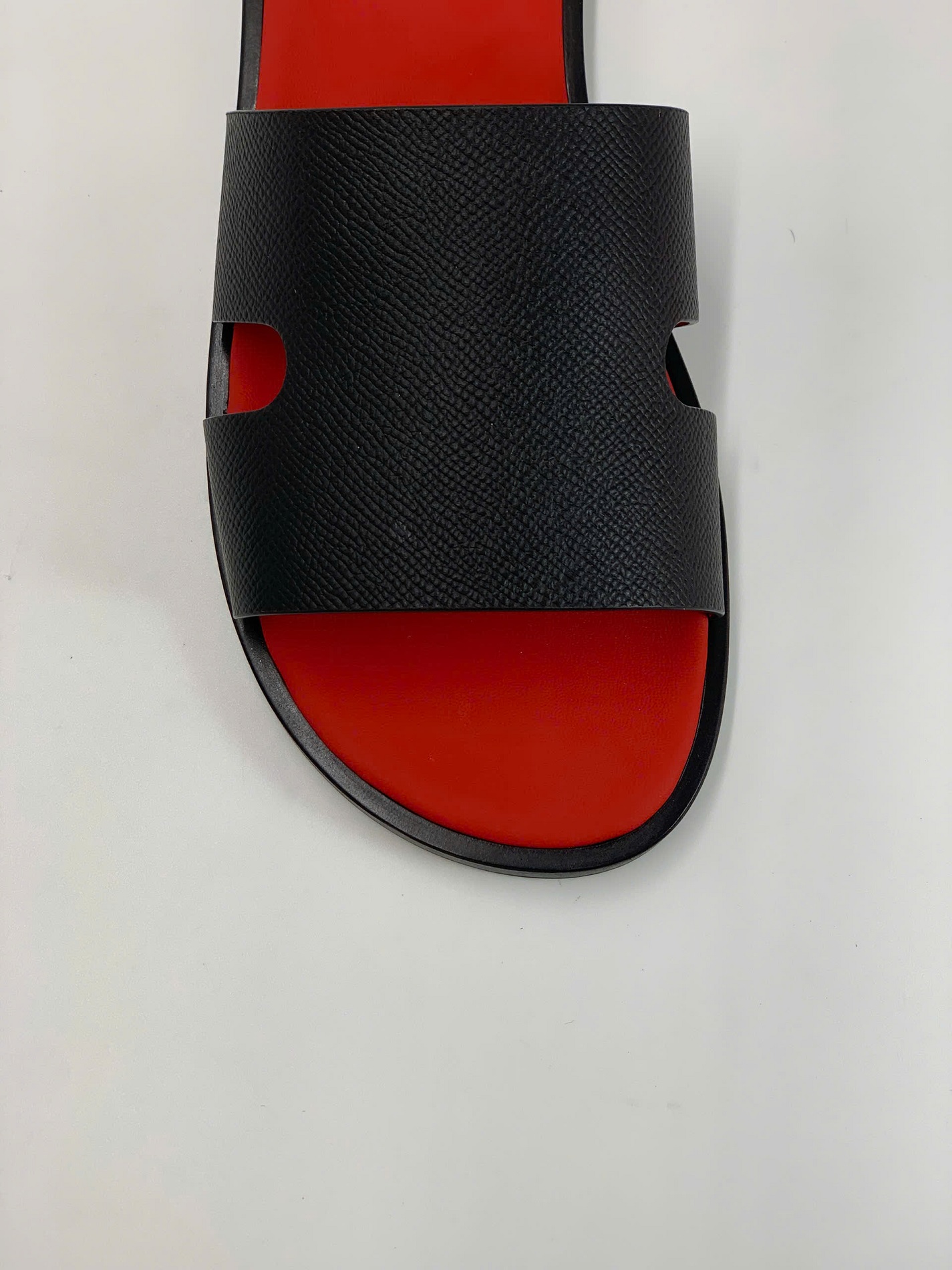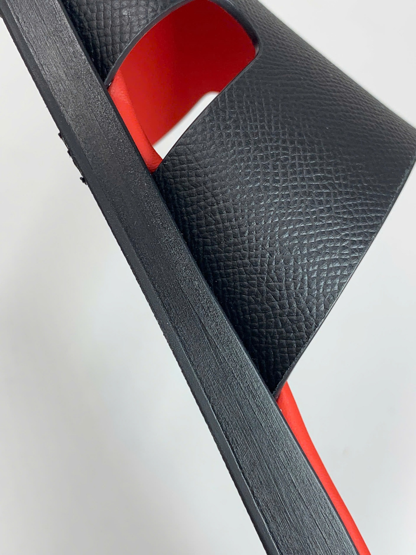 Quai dép: Da Epsom Weinheimer Đức – dòng da danh tiếng, được nhiều thương hiệu xa xỉ tin dùng nhờ độ bền, khả năng chống xước và bề mặt vân sang trọng. Phần quai dép được khâu thủ công tỉ mỉ, vừa chắc chắn vừa tạo điểm nhấn thẩm mỹ.