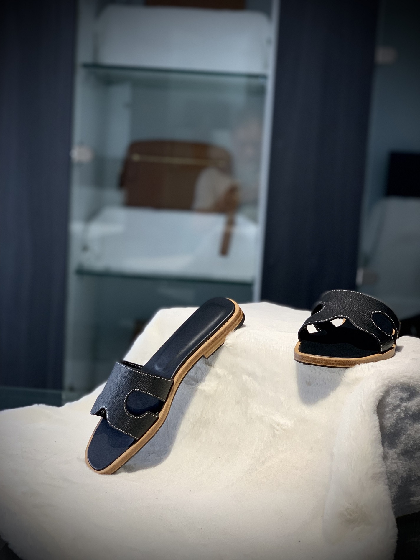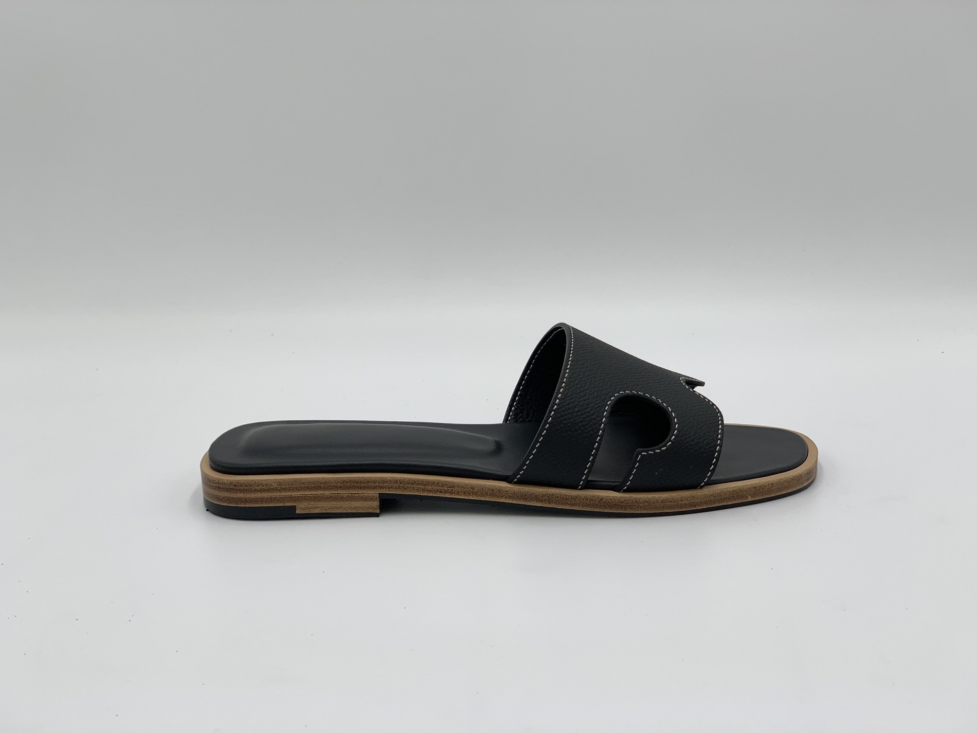Phần đế dép làm từ da veg-tan Ý – loại da thuộc thực vật bền chắc, nhẹ và thân thiện với môi trường, được Leather Working Group chứng nhận về chất lượng và quy trình sản xuất bền vững.