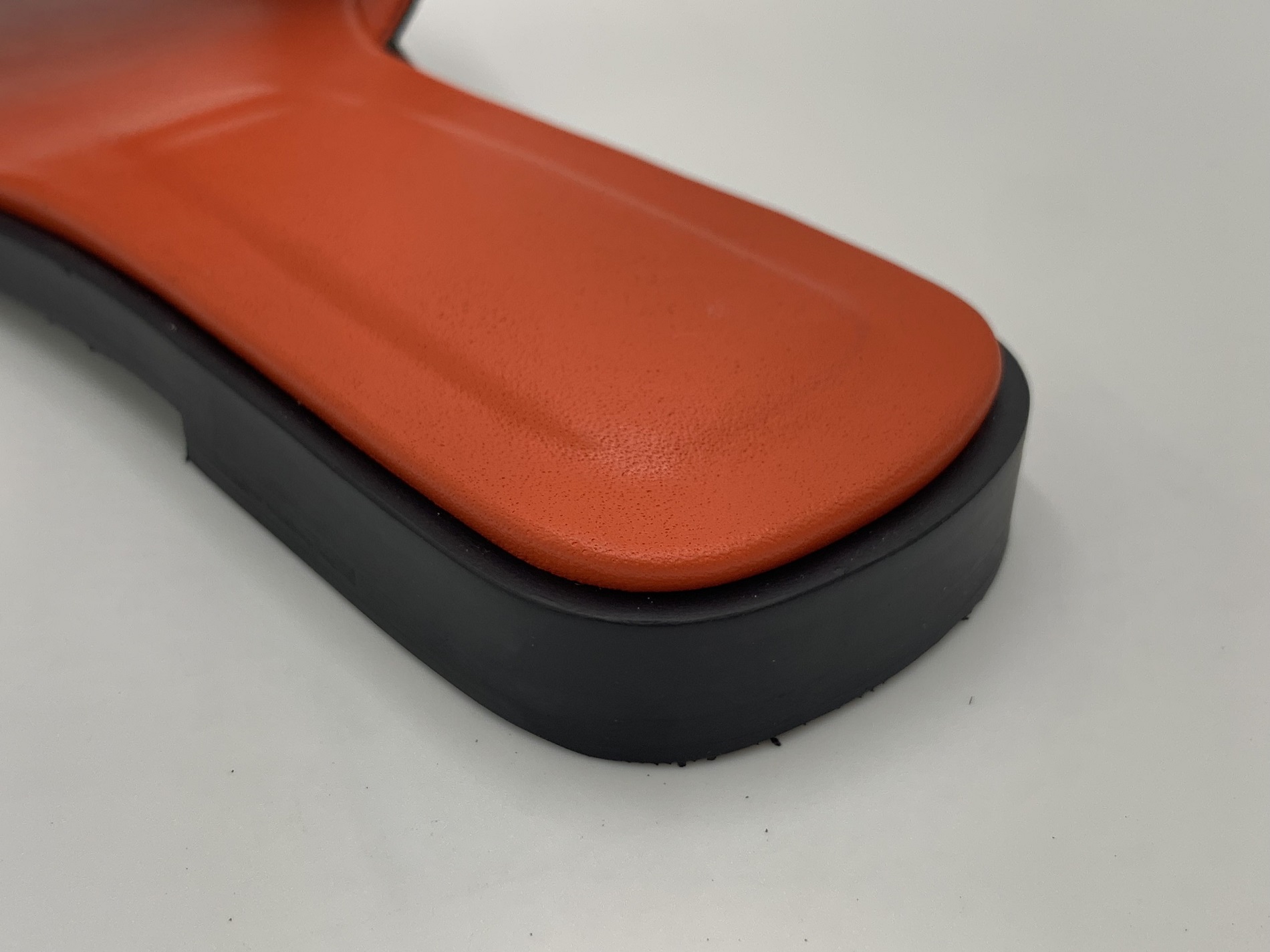 Phần lót dép làm từ da bê Ý màu đỏ cam – mềm mại, êm chân và thấm hút mồ hôi tốt, tạo cảm giác thoải mái khi di chuyển cả ngày. Đế dép được làm từ da veg-tan Ý – loại da thuộc thực vật tự nhiên, nhẹ và cực kỳ bền, nâng tầm đẳng cấp cho sản phẩm.