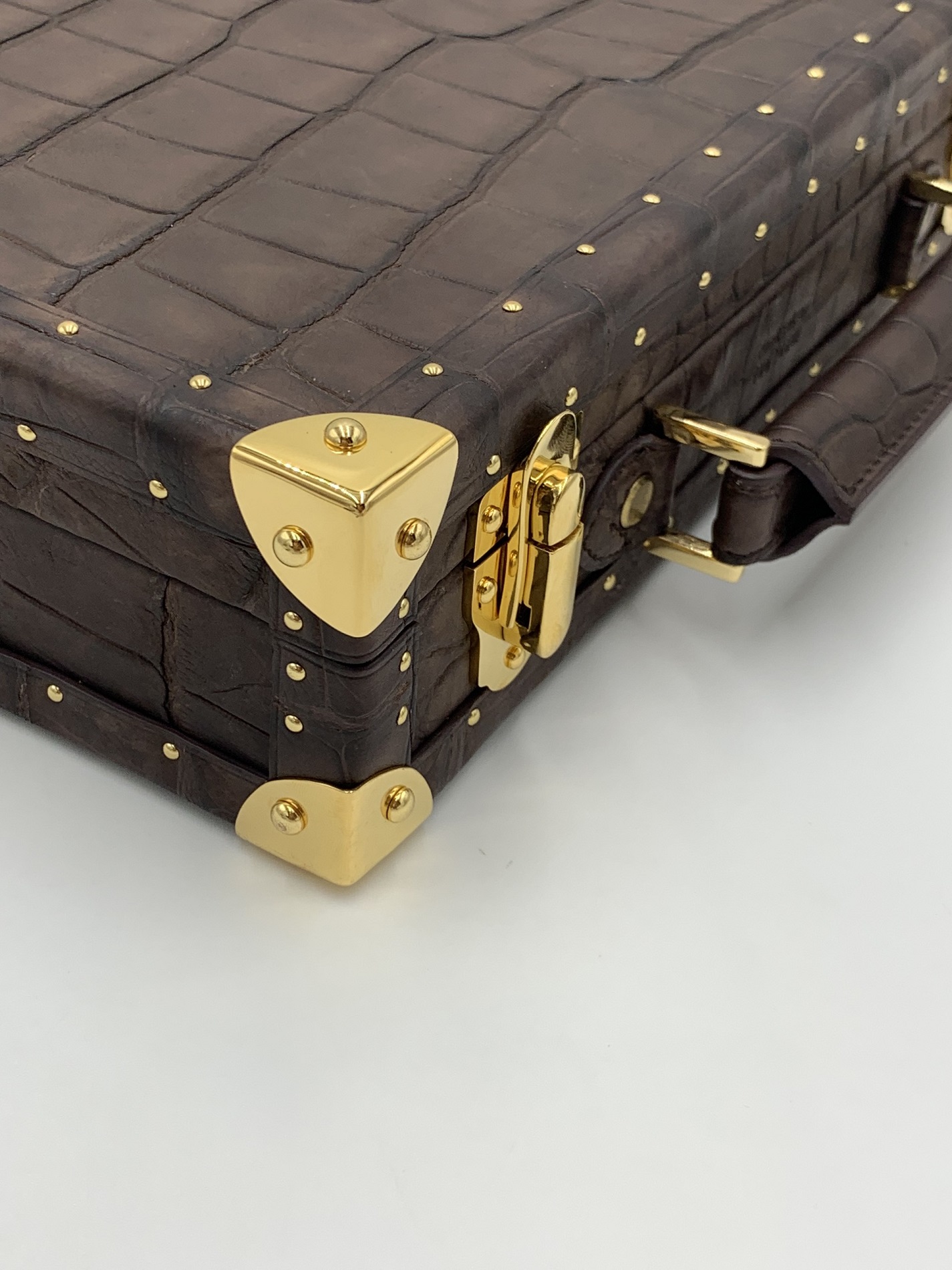 Rio Trunk sử dụng da cá sấu nhập khẩu Pháp – loại da nổi tiếng với độ bền, độ bóng và vân da đặc trưng, thường được dùng trong các sản phẩm cao cấp của Hermès hay Louis Vuitton.