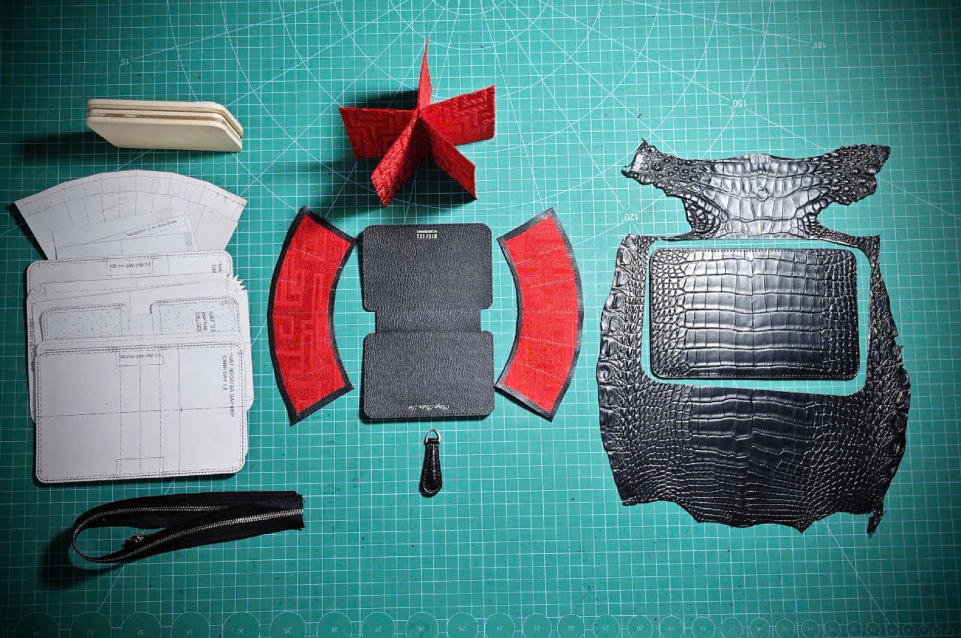 2. Chất liệu cao cấp – Sự kết hợp của da cá sấu, da bê và gấm tơ tằm