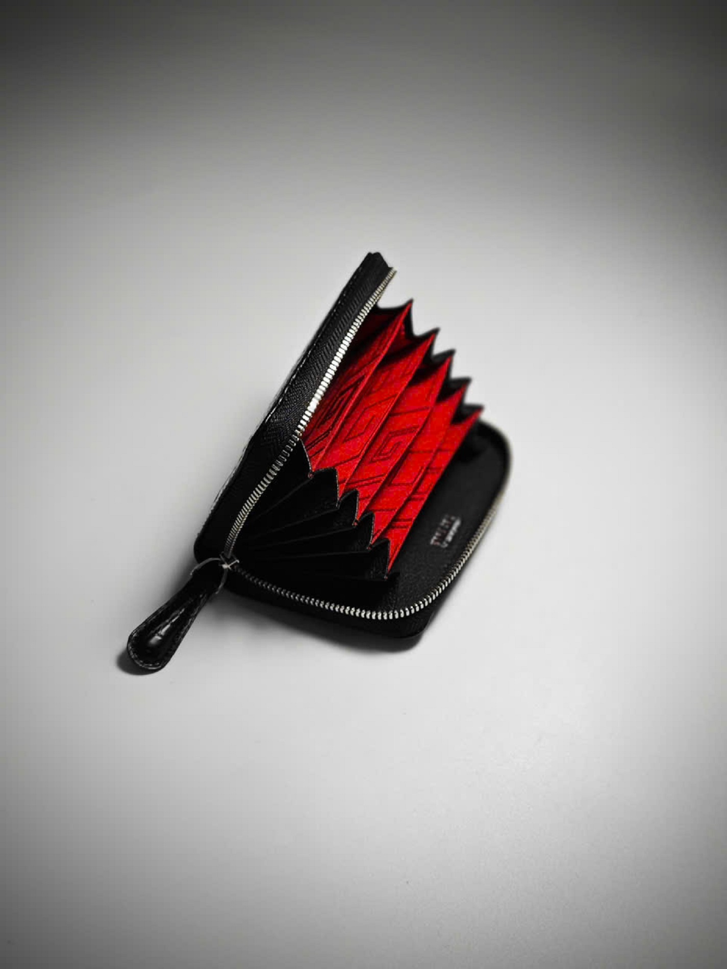 - Gấm tơ tằm thủ công được dùng cho các ngăn chia thẻ – một điểm nhấn hiếm có trong thế giới phụ kiện da, kết hợp giữa nghệ thuật chế tác và truyền thống Á Đông.