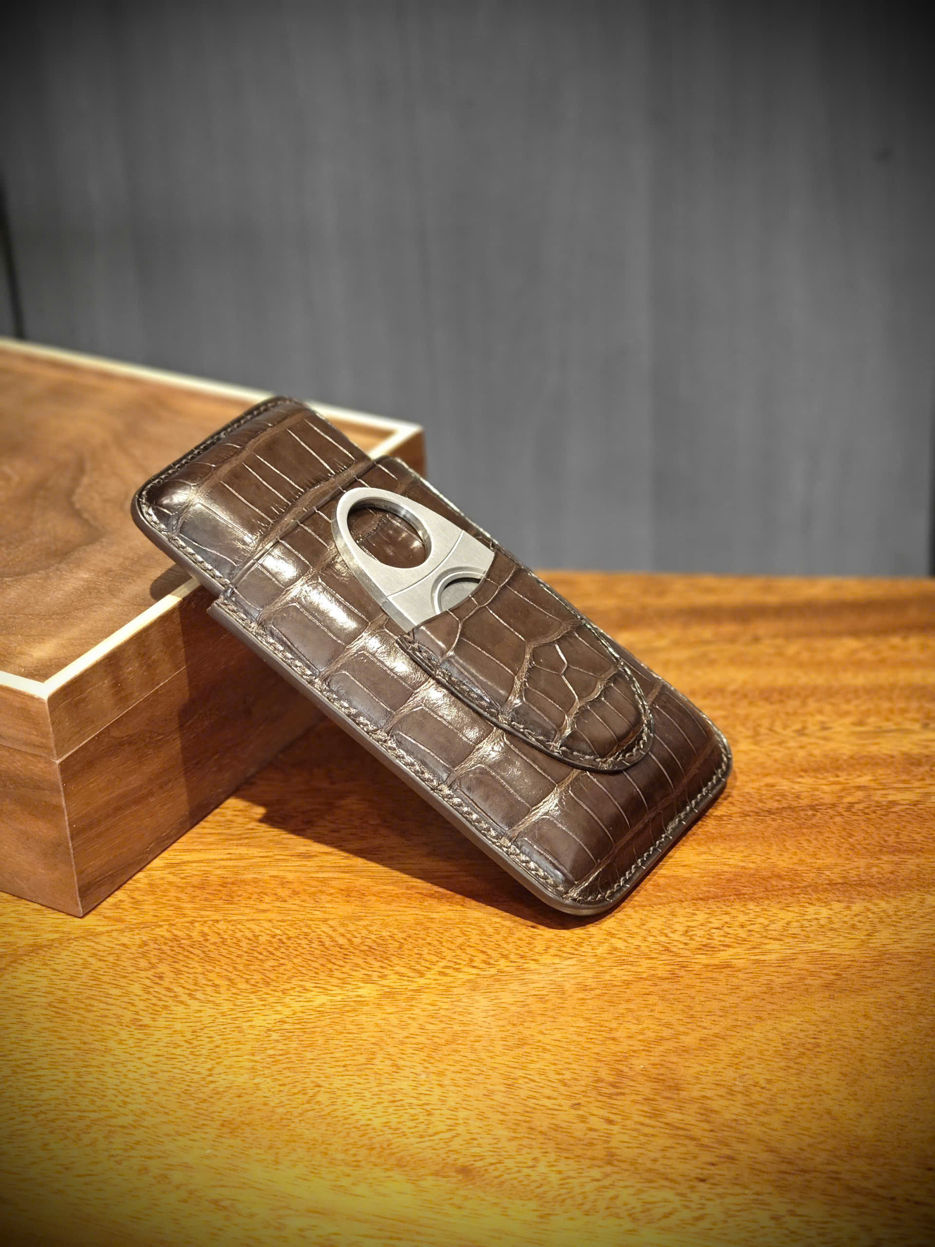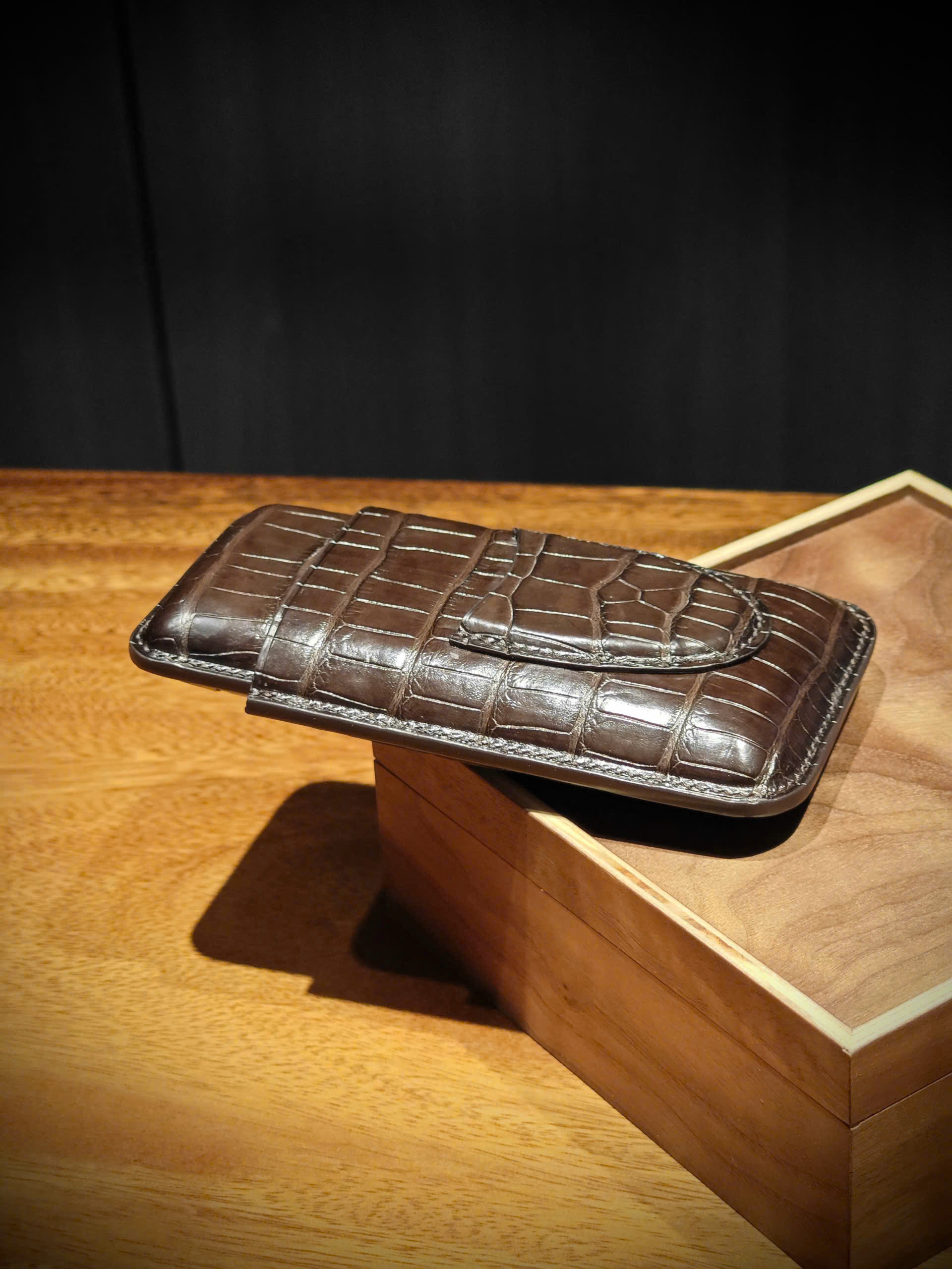 TP Crown – bao da xì gà 3 điếu từ da cá sấu Ý, chế tác thủ công bởi Thế Phạm.