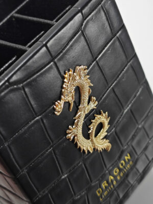 Điểm nhấn linh hồn của TP Pen Box King Edition nằm ở logo rồng vàng 18K nguyên khối, được đúc thủ công và đánh bóng tỉ mỉ trước khi gắn lên hộp.