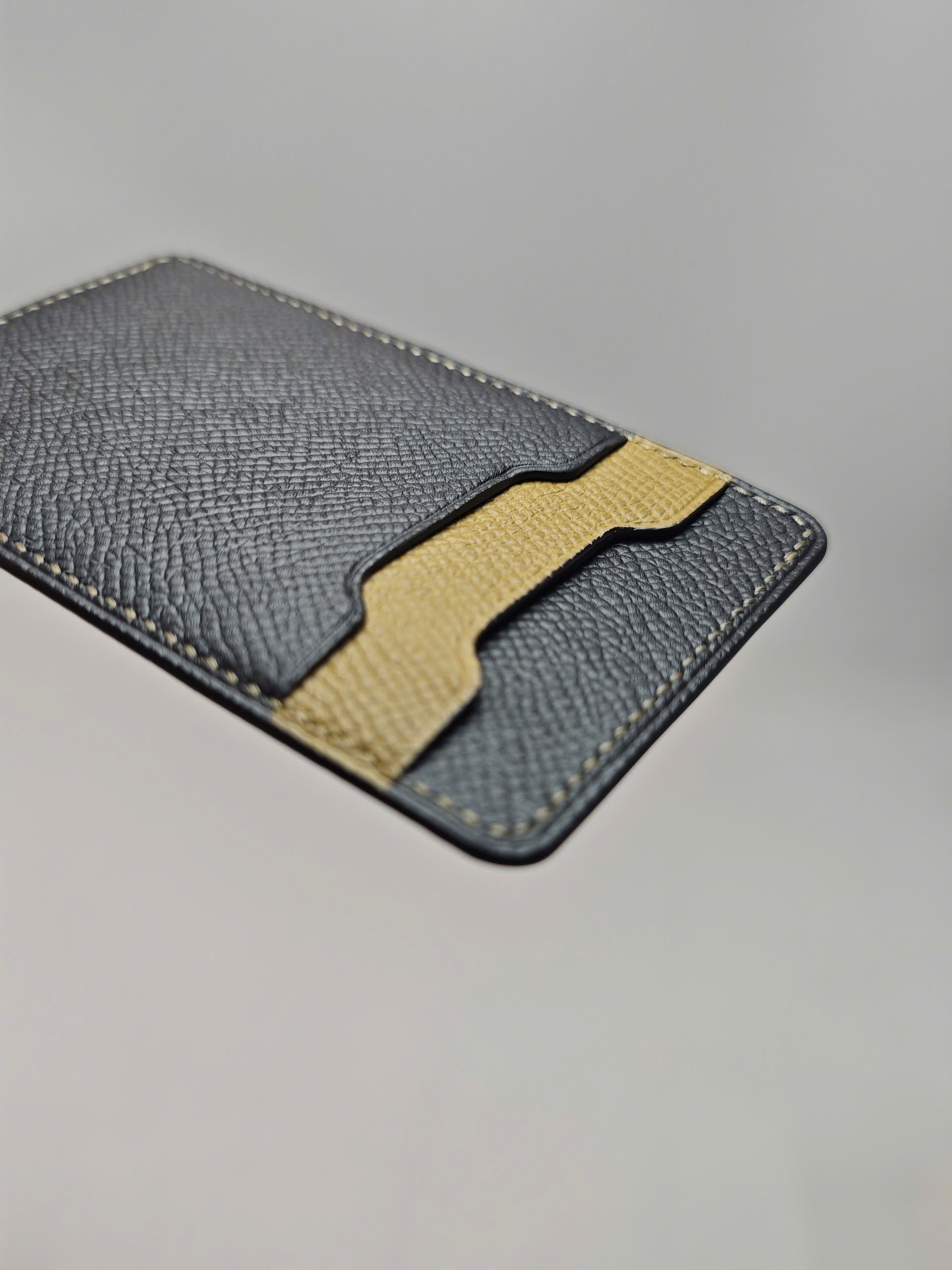 Mỗi chiếc ví được chế tác hoàn toàn thủ công tại xưởng Thế Phạm. Người thợ phải lựa chọn những tấm da Epsom hoàn hảo, cắt thủ công để đường vân đồng đều, xử lý viền cạnh nhiều lớp để chống bong tróc và giữ độ mịn. Các đường may được thực hiện bằng tay hoặc máy chuyên dụng, đảm bảo độ đều, thẳng và chắc chắn.