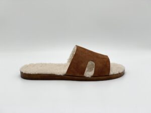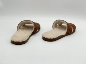 - Lót dép da cừu Ý: Da cừu vốn nổi tiếng bởi độ nhẹ, khả năng điều hòa nhiệt độ và tạo cảm giác êm ái khi mang lâu. Đây chính là điểm cộng tuyệt đối cho những đôi dép sử dụng trong nhà.