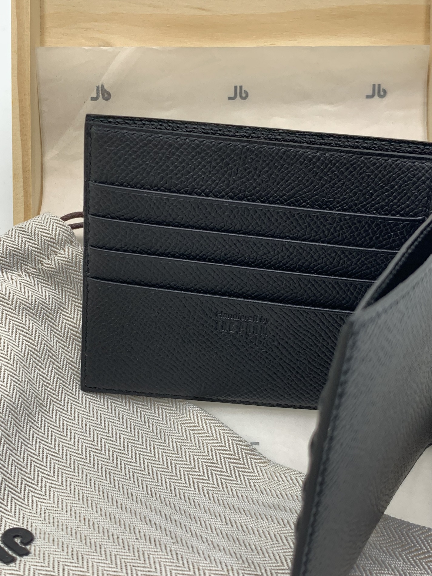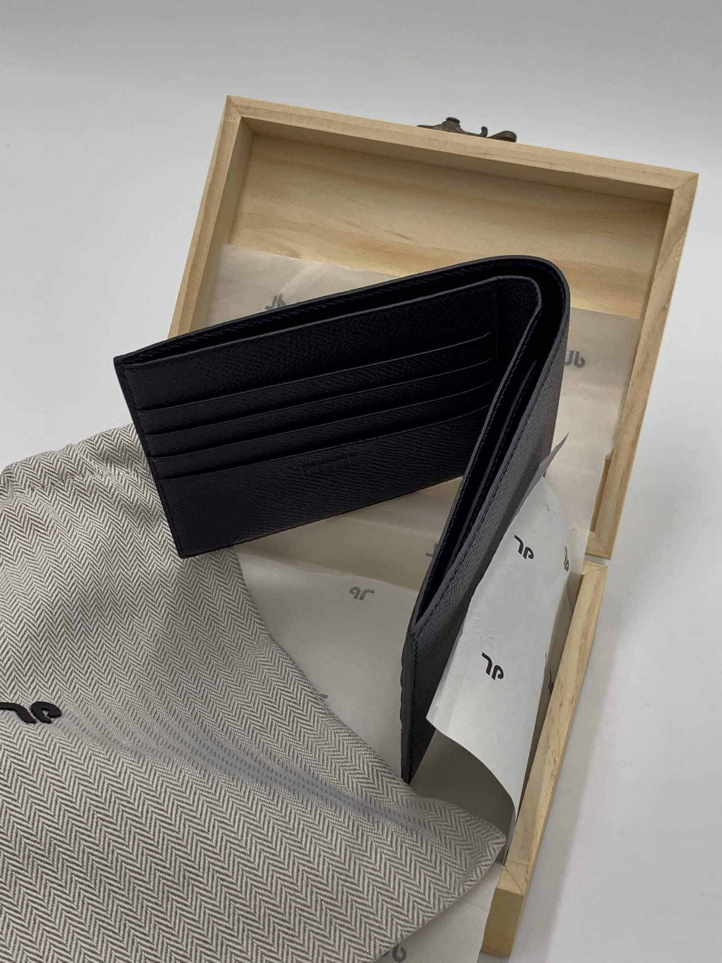 Điểm nổi bật nhất của chiếc ví gấp đôi nam màu đen TP Bifold chính là chất liệu da Epsom Weinheimer Đức – một trong những loại da nổi tiếng hàng đầu thế giới về độ bền, vân đẹp và khả năng chống trầy xước. Da Epsom có cấu trúc hạt dập vân đều, giúp giữ form ví cực tốt, đồng thời mang lại cảm giác cứng cáp và sang trọng ngay khi cầm trên tay.