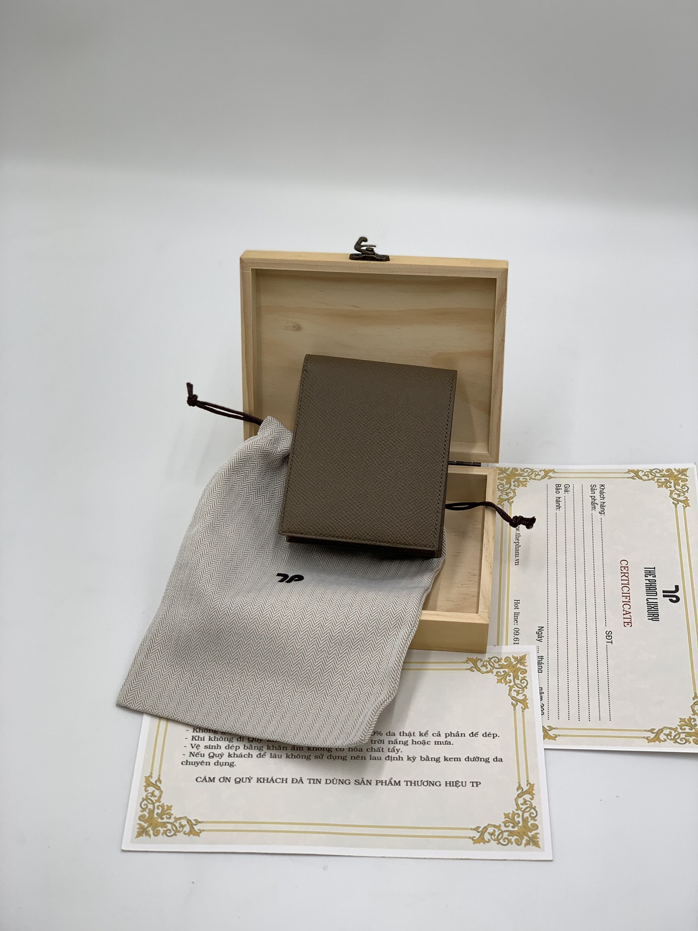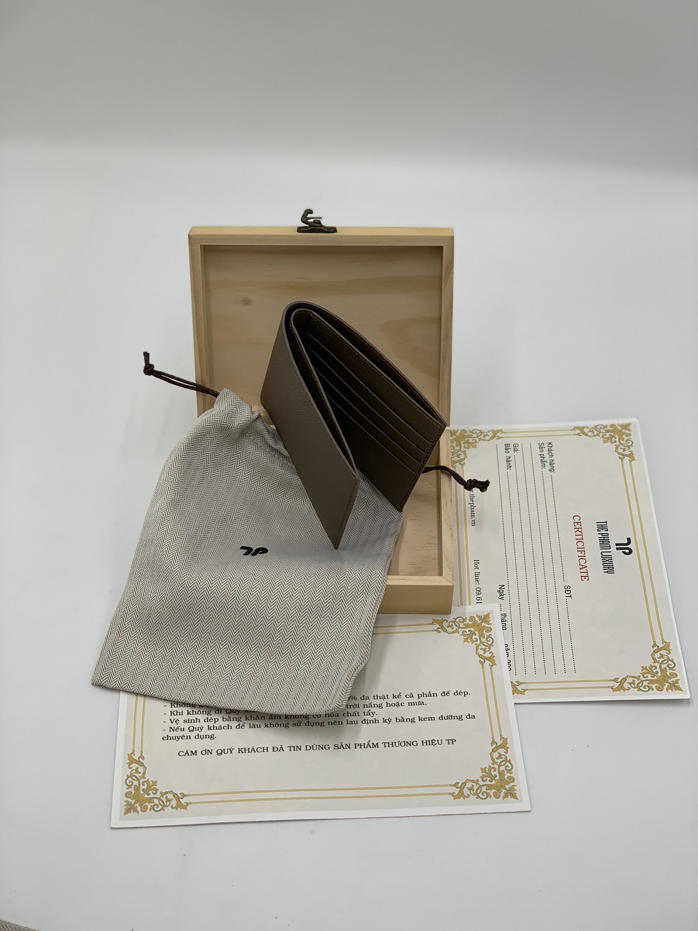 Chiếc ví gấp đôi nam màu etoupe thuộc dòng sản phẩm TP Bifold của Thế Phạm mang đến sự tinh tế, hiện đại nhưng vẫn đậm chất cổ điển. Màu etoupe – gam màu xám trung tính pha nâu nhẹ – vốn được các thương hiệu thời trang xa xỉ như Hermès yêu thích, nay được ứng dụng trên chất liệu da Epsom cao cấp của Đức, mang đến một chiếc ví vừa thời thượng vừa bền bỉ.