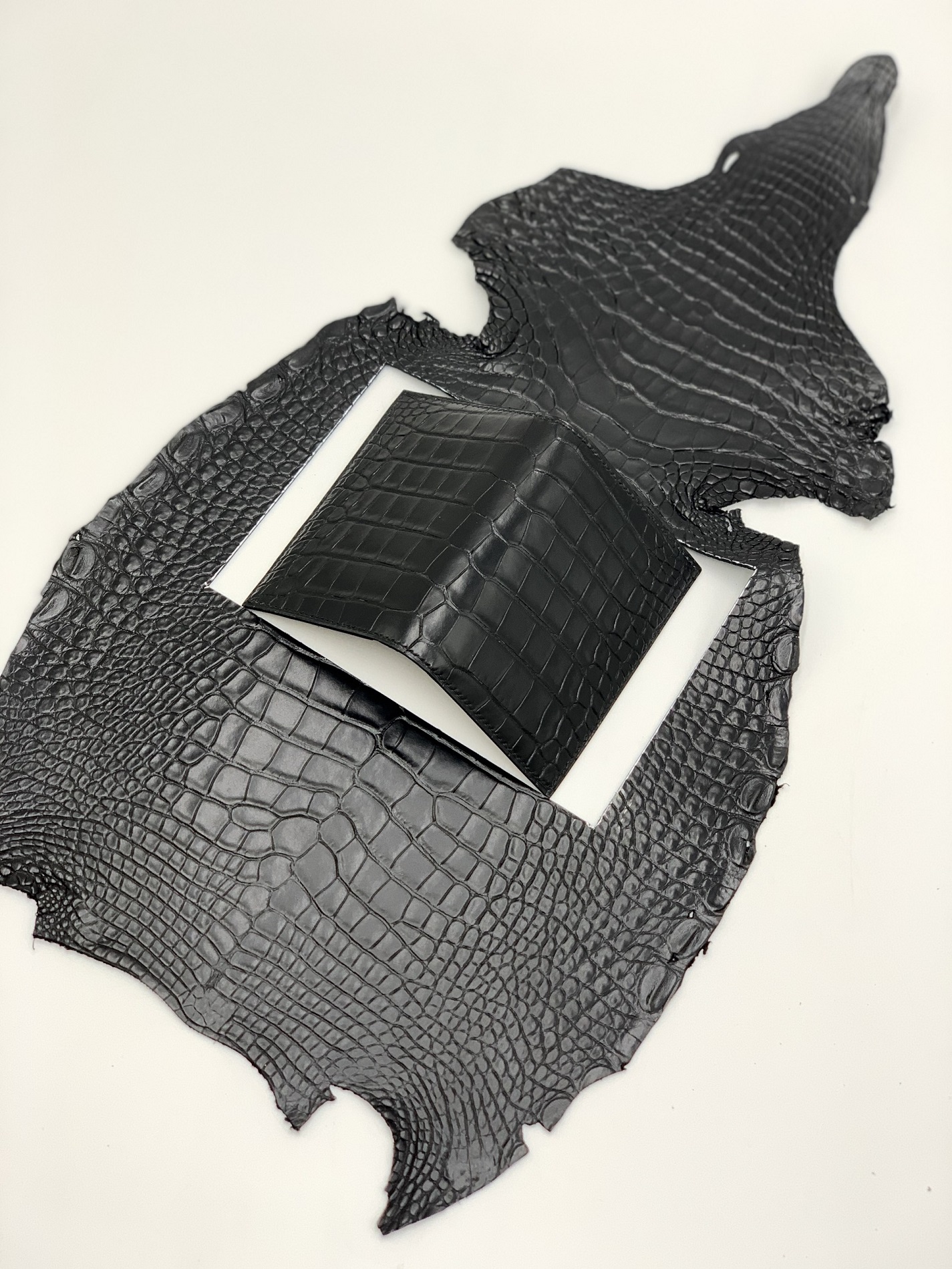 Chất liệu da cá sấu được sử dụng là loại da cá sấu nhập khẩu từ Pháp, được xử lý thuộc cao cấp để giữ lại toàn bộ nét tự nhiên của vân da. Từng đường vảy cá sấu hiện rõ, sắc nét và sang trọng – mỗi chiếc ví là một sản phẩm độc bản không trùng lặp.